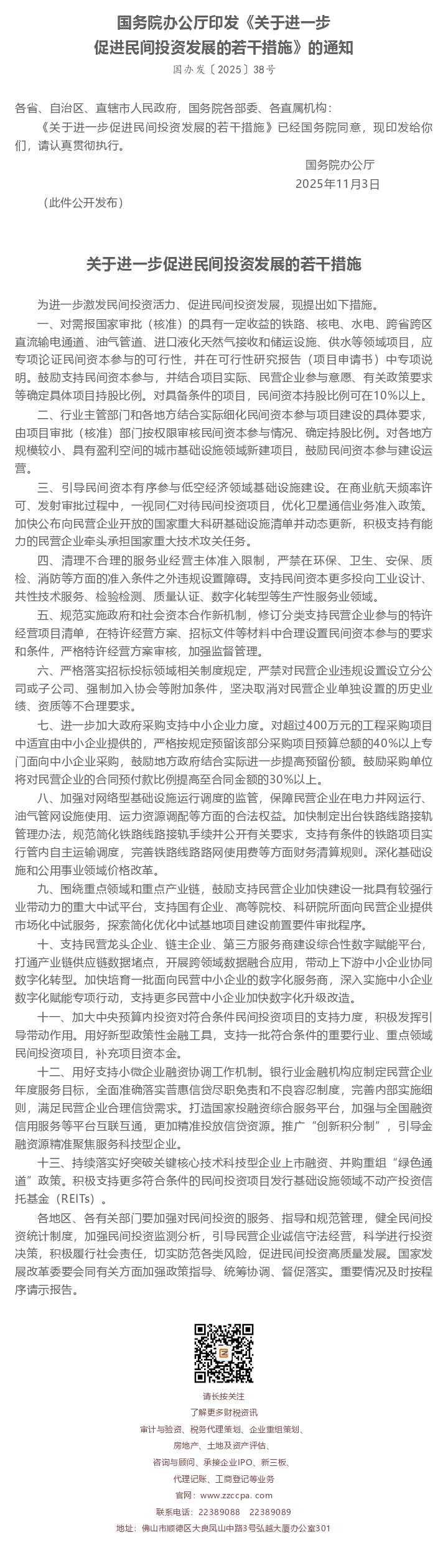 【财税法规】国务院办公厅印发《关于进一步促进民间投资发展的若干措施》的通知