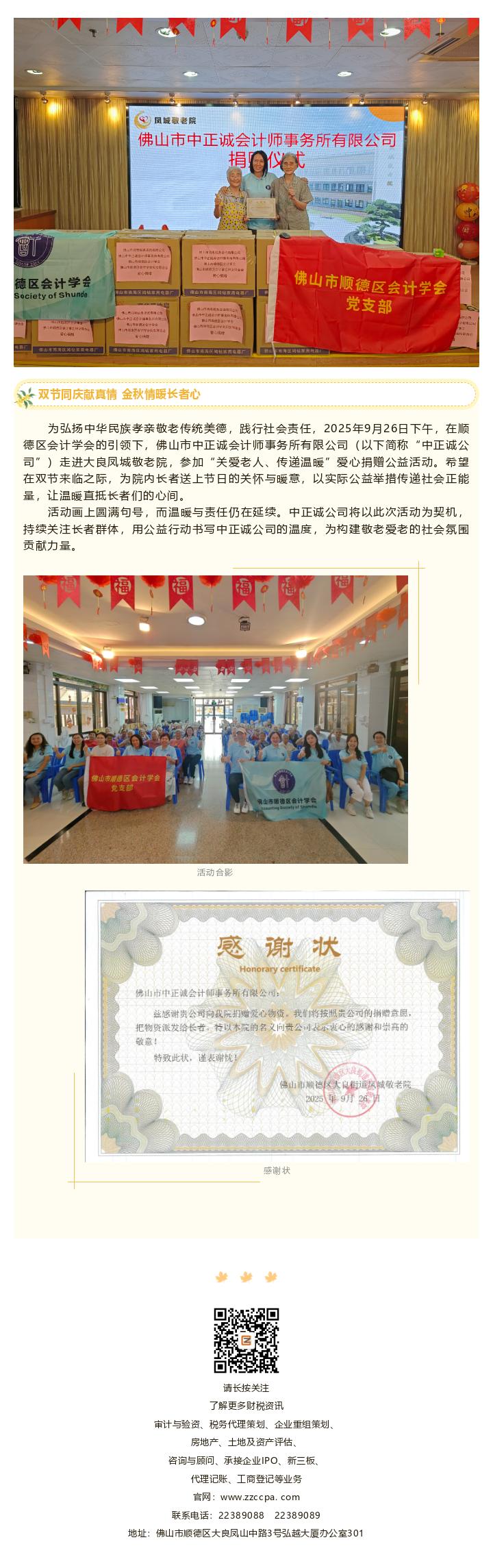 【活动新闻】双节同庆献真情 金秋情暖长者心——中正诚参加凤城敬老院爱心捐赠公益活动