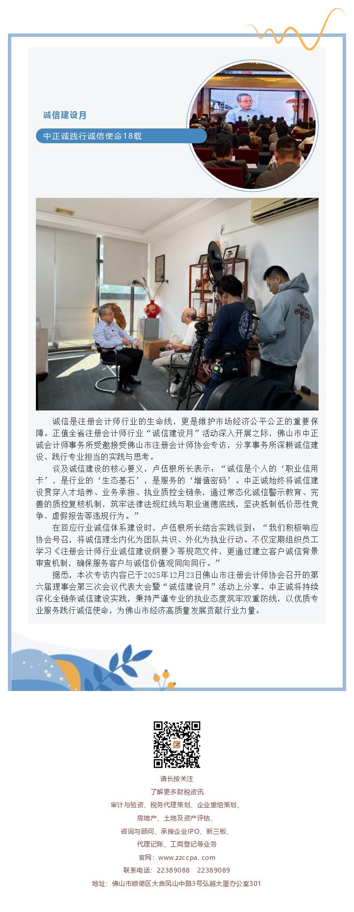 【活动新闻】践行诚信使命18载——中正诚会计师事务所受邀接受市注协“诚信建设月”活动专访
